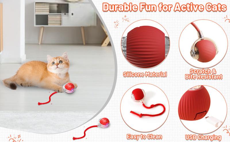 Electric Cat Toy Ball, Rechargeable Dog Ball Toy, Interactive Cat Teaser Toy, Automatic Rolling Ball Toy, Gift for Pets, Pet Supplies, Dog & Cat Accessories, Valentine'S Day Gift