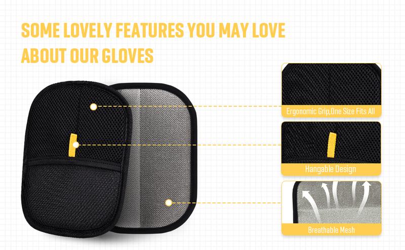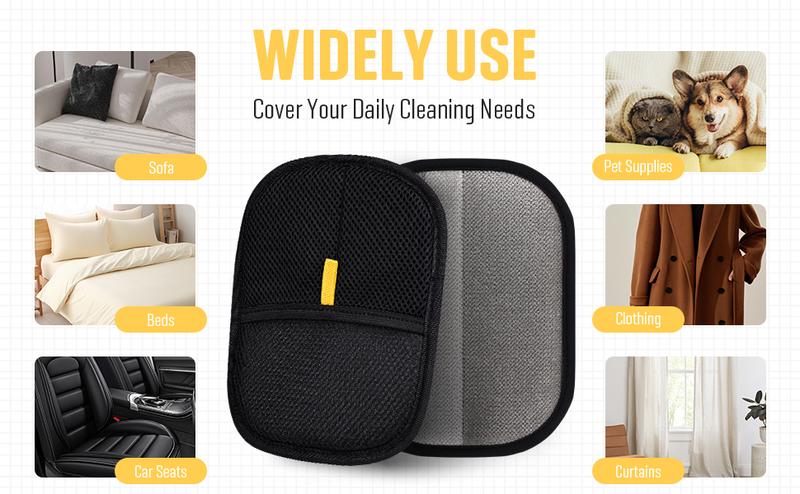 [Static Electricity Hair Removal] -- Advanced electrostatic hair removal technology, just rub back and forth, you can easily remove hair, say goodbye to hair troubles, easy and environmentally friendly, reusable. [Wide Coverage and Large Range] -- The hair removal gloves are designed to cover a large area and can easily and quickly handle the surface of objects, allowing you to clean surfaces such as sofas and carpets in a short time. You can easily remove all hair by just waving your hands. [Wearing comfortably] -- The Pet Hair Remover Gloves feature an elasticized wrist cuff, makingthem easy to wear and suitable for most hand shapes. No tying orclinging to the fur, ensuring a hassle-free grooming process. [High-Grade Materials] -- Crafted from breathable mesh fabric and durable TPR, these CatGrooming Gloves are thick, wear-resistant, and bite-resistant,designed for long-term use without compromising onperformance. [Wide scope of Applications] -- Whether it's clothes, sofas, carpets or car seats, these cat hair removers are suitable for any fabric surface. You can clean your cat loose haireffortlessly, keeping them fresh and comfortable.